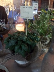 על שולחנות האוכל חיכו לאורחים עציצי תבלין אותם יקחו הביתה