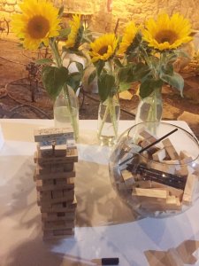 ברחבת הכניסה עמד המשחק הנפלא עם הקוביות מעץ