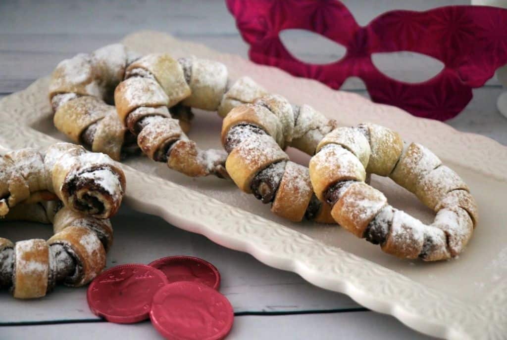 • מתחילים מלמעלה מהחלק עם השוקולד ומגלגלים בעדינות את הבצק לרולדה ארוכה.