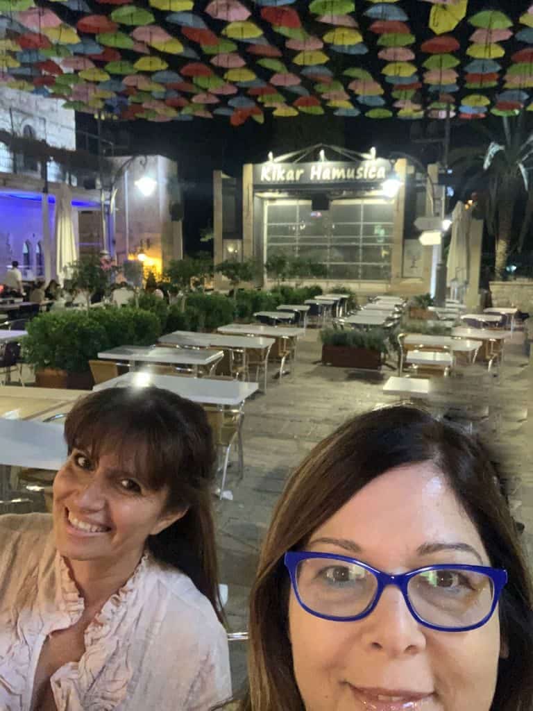 אנג'ליקה ואני במצב רוח טוב לפני הכניסה לבר