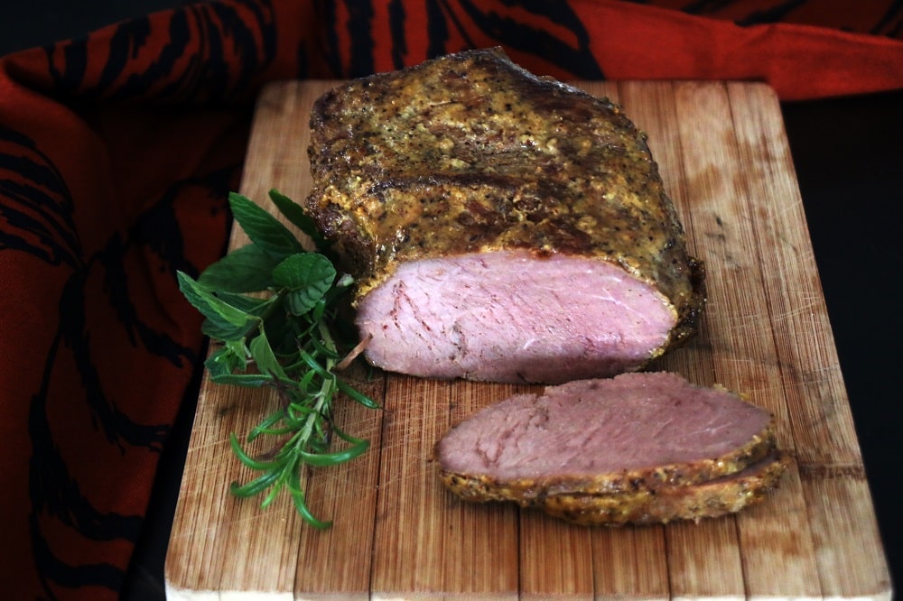 ציפיתי את הבשר בשכבה של חרדל מלח ופלפל. אל תפחדו לרפד את הבשר כי התבלינים לא חודרים לתוך הבשר.
