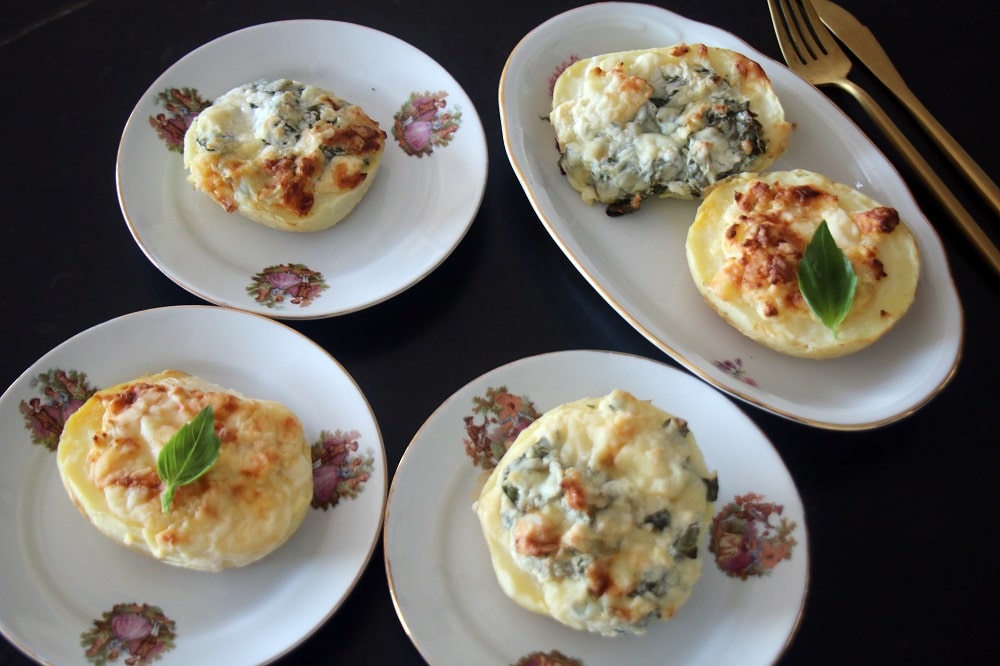 תפוחי אדמה ממולאים גבינות ומנגולד, מנה צמחונית נפלאה בטעמה