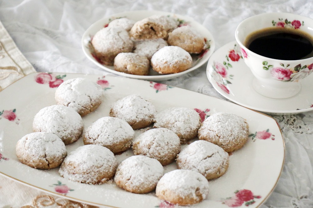כשהייתי קטנה, אבא שלי הביא מיוון עוגיות קורבייה ומאז הטעם נשאר בפה. העוגיות קורבייה הן עוגיות שמתפוררות בפה, כל ביס פירורי עוגיות בפה. את העוגיות שלי, כדי שיהיו טבעוניות ופרווה, הכנתי עם נטורינה שזהו תחליף מעולה לחמאה או מרגרינה. אני צילמתי את העוגיות עם הסט הנהדר של אמא שלי, שבדיוק ככה מזכיר לי את אמא שלי בימיה הטובים, אצלנו שתו תמיד קפה, לא זוכרת תה.