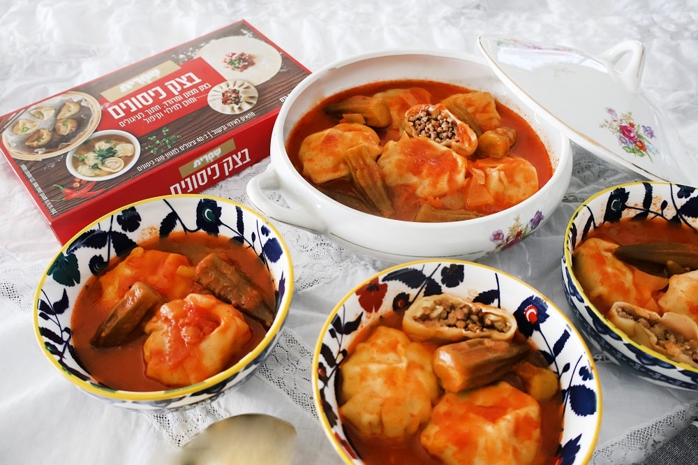 מרק הבמיה עם רסק העגבניות נפלא בטעמו, הכיסונים הנפלאים עם הבשר המתובל מוסיפים למרק טעם נפלא.
