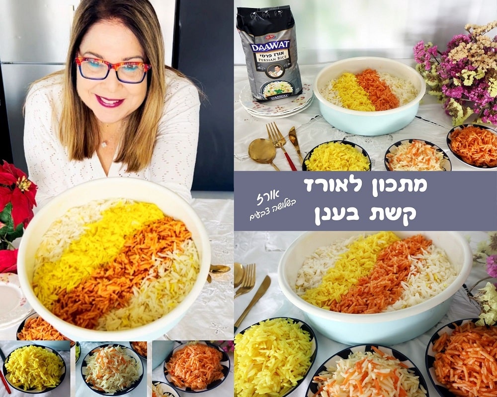 - בתבנית מסדרים את האורז בצבעים כדי שכולם ייהנו. בתיאבון וחג שמח.