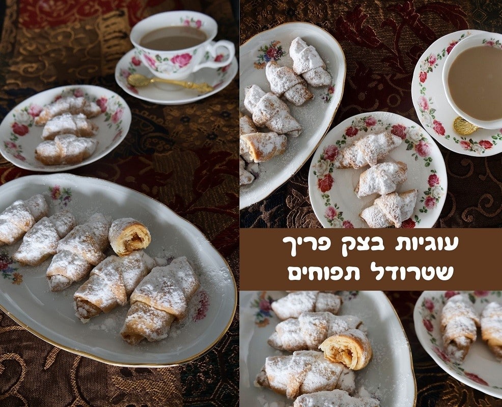 מגלגלים לסהרונים ולתנורעוגיות בצק פריך שטרודל תפוחים