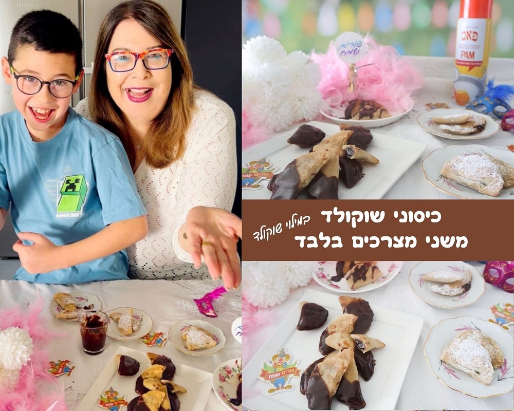 על חלק מהכיסונים פיזרתי אבקת סוכר ואת חלקם טבלנו בשוקולד מומס