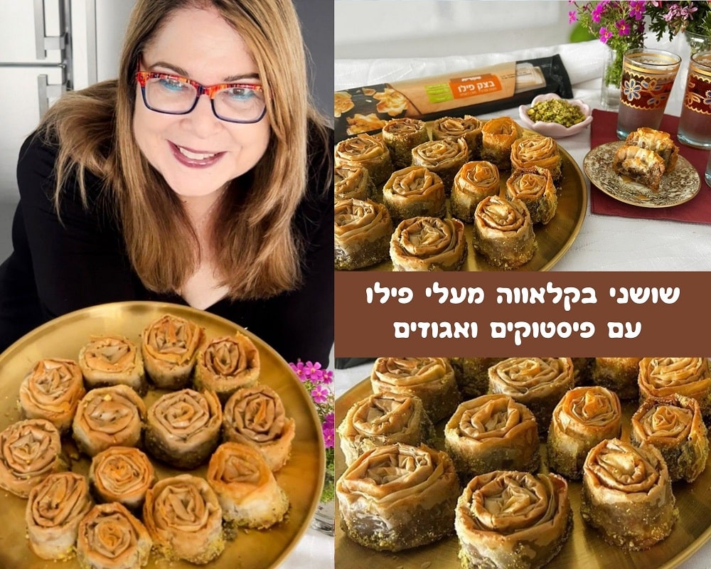 שושני בקלאווה מעלי פילו עם אגוזים ופיסטוקים קראנצ'ים ופריכים נפלאים בטעמם, כאלה עוד לא אכלתם.