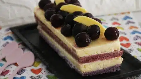 עוגת גלידה שכבות מנגו ודובדבנים זו עוגת גלידה